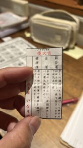 堅い、堅い、私の歯では食べられないくらい、堅いおみくじ入りの煎餅をもらったのですが、、、、。えっと「後大吉」初です💦
