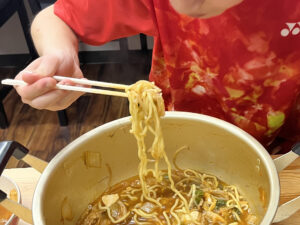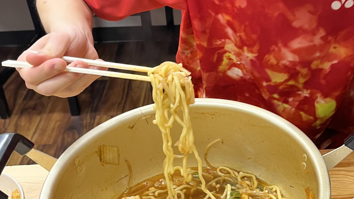 なんと鍋ごと食べ始めた男子がいて、みんなで大笑い。