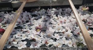 手水舎には美しい花手水が広がり、