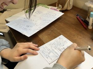 しっかりマーキングさせながら、プロセス含めて、しっかり日本語で埋め尽くす。日本語を丁寧に書かせる。