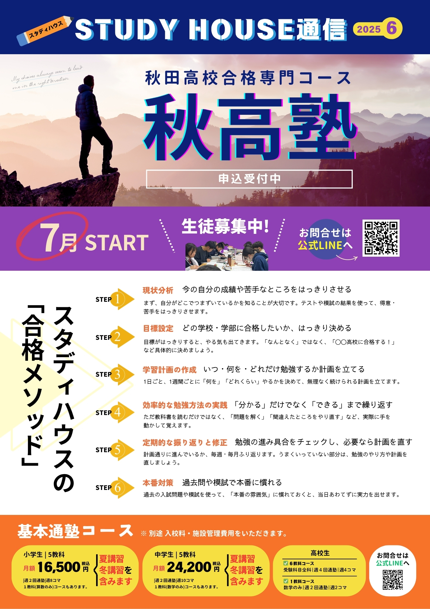 スタハ通信【2025年6月号】【 秋高塾 】いよいよ7月始動‼️ 2025年6月1日 STUDY HOUSEでは 他にも様々な学習イベントを開催しています! ぜひ、最新の学習イベントをSTUDY HOUSE公式LINEに登録して情報をゲットしてください💪